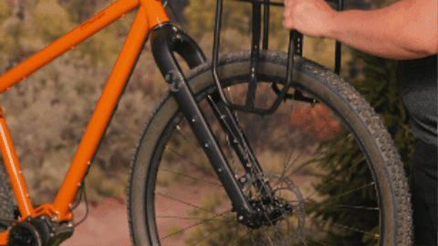 - Place your OMM rack on your bike and install the OMM QR Skewer through the rack Dropouts and your hub.