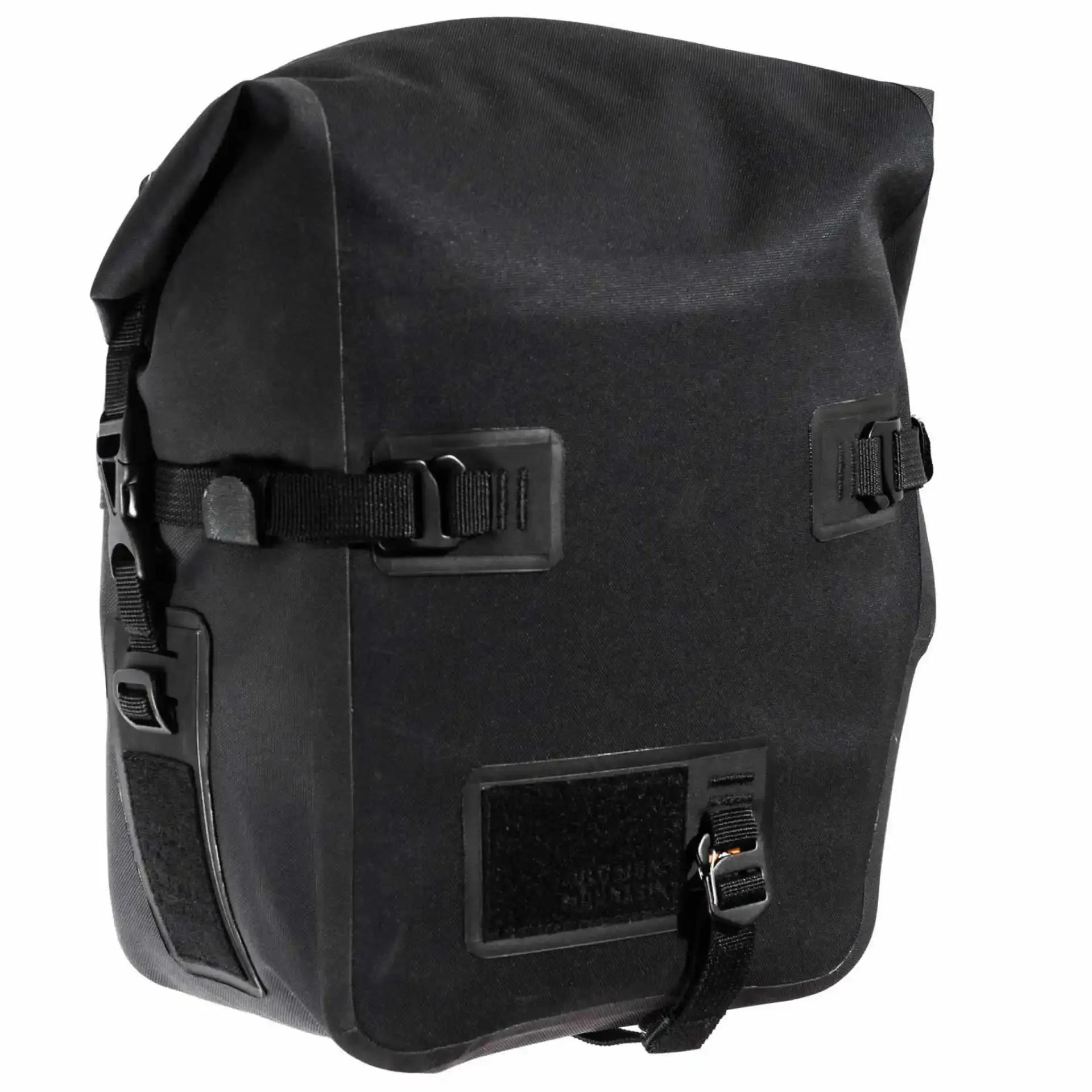 - Peso minimalista = 475 g (ciascuno), 950 grammi al paio. Senza cinghie di compressione laterali, telaio anteriore o clip laterali roll top.