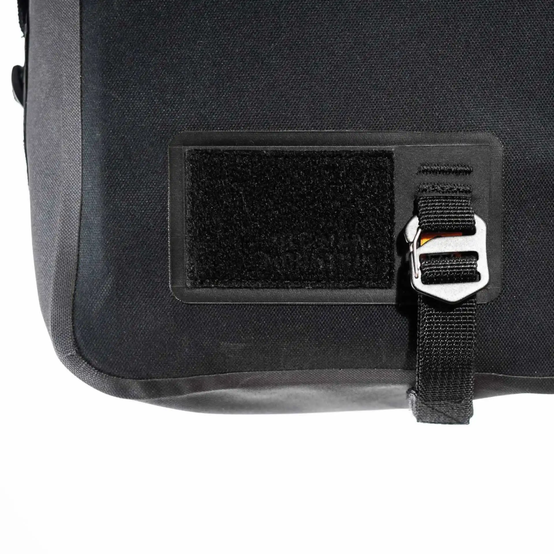 Le borse laterali Ponderosa hanno il tipico foglio rigido nella parte posteriore (contro il portapacchi), ma abbiamo anche aggiunto un foglio rigido rimovibile sul lato anteriore della borsa in modo che si comprima uniformemente per darti la borsa dal profilo più sottile possibile con ciò che scegli di trasportare. Il nostro logo è super sottile, così puoi concentrarti sulla tua avventura e non sui nostri loghi. È goffrato nel velcro ad anello in modo da poter attaccare qualsiasi toppa con facilità e sostituirlo a seconda del tuo umore.