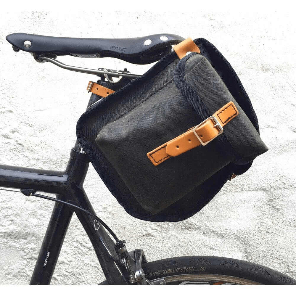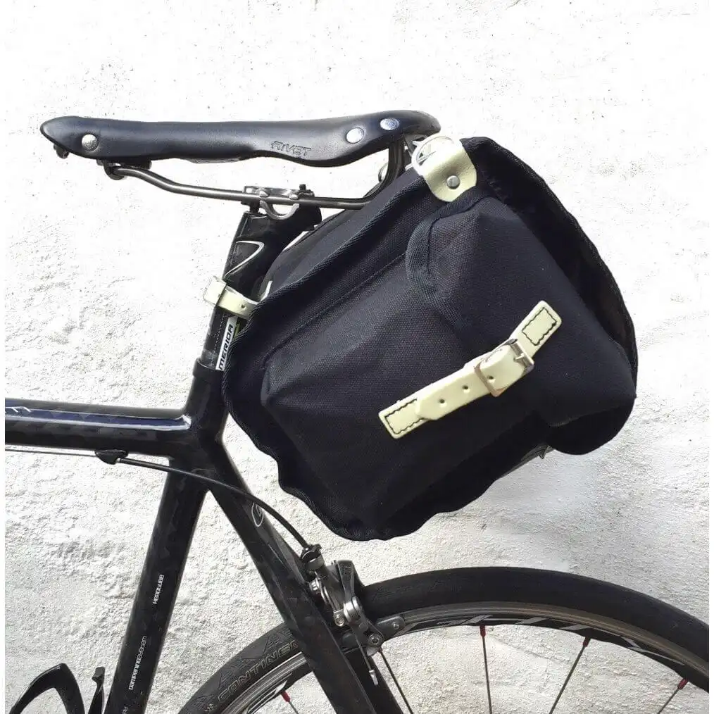 Carradice Nelson Saddlebag, saddlebag that attaches to saddle rings, e.g. a Brooks saddle. The Saddlebag can also be attached to the saddle using the Carradice Bagman QR mount. The Bagman QR mount is compatible with saddles that may or may not have rings. Perfect for touring or bikepacking.