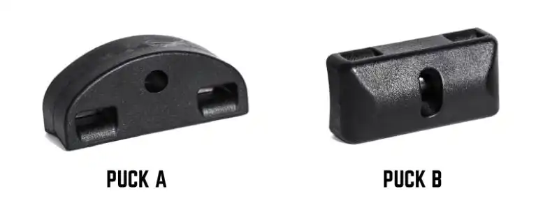PUCK A should be installed with the hex nut slot facing your wheel. Use with Hardware Kit 6.