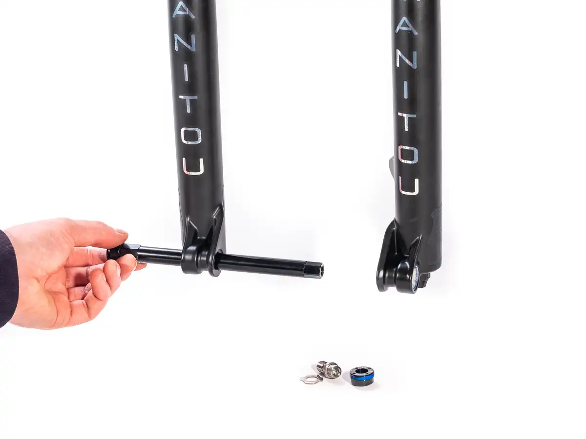 Our front suspension design, attaches the weight of all your gear to the wheel which means you don't have to mess with fork adjustment each time you load your gear. We also have a much stiffer design in that our models provide bracing at the bottom of the rack. Our suspension-compatible front racks mount to the axle with our QR Skewer or thru-axle, providing a solid attachment which excellent lateral rigidity.